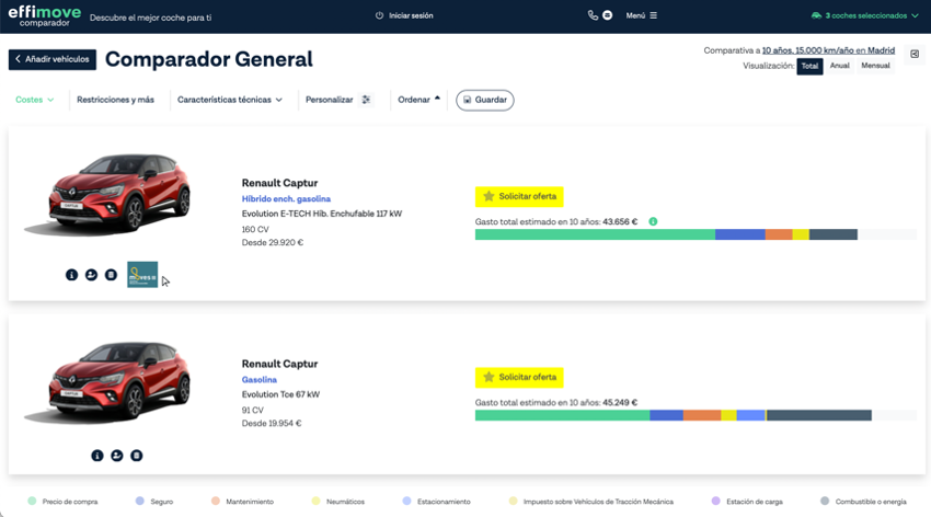 Lo cierto es que sí son interesantes, pero de nuevo solo si lo vamos a utilizar para viajes largos solo excepcionalmente y podemos cargarlos en nuestro día a día, la diferencia de precio se puede amortizar total o parcialmente con el uso a lo largo del tiempo, como podemos ver en el ejemplo que proponemos a continuación para un Renault Captur.