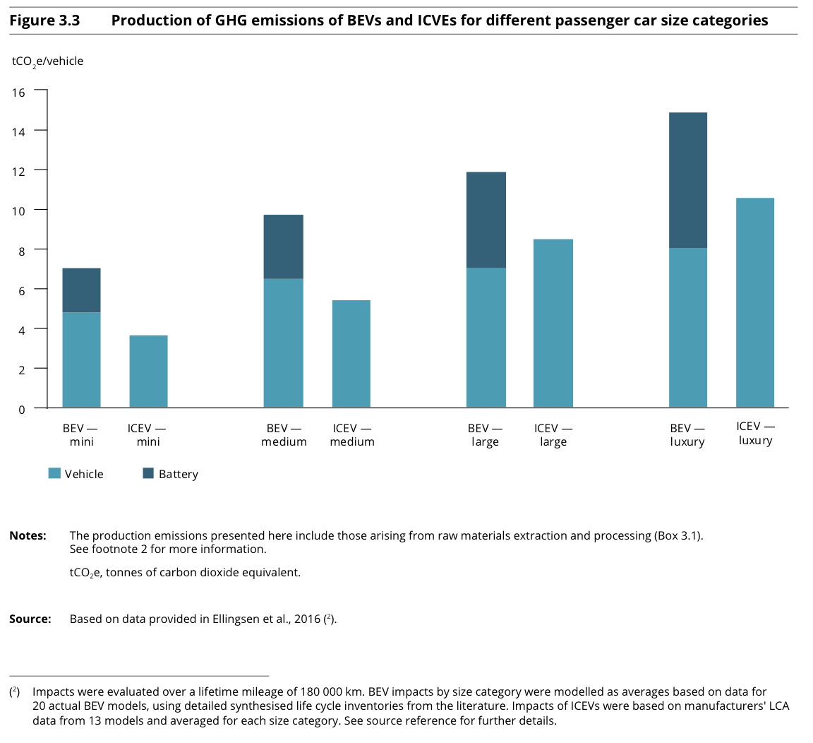Estimación realizada por la Agencia Europea del Medioambiente: «Electric vehicles from life cycle and circular economy perspectives»