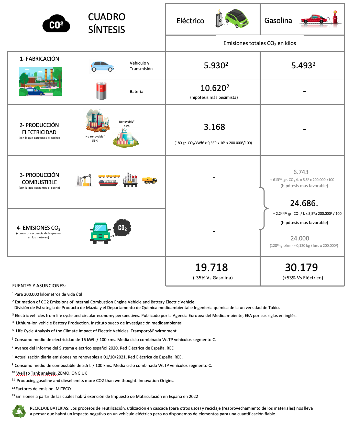 Tabla de síntesis emisiones CO2: Eléctricos Vs Gasolina