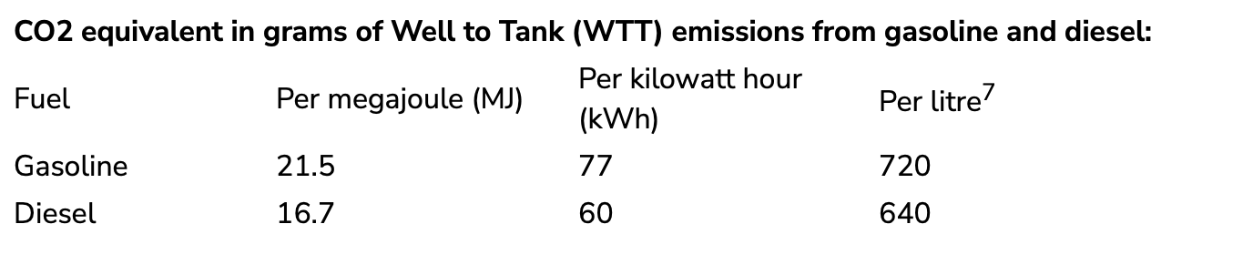 De acuerdo a su publicación estiman unas emisiones de 720 gr./CO2 por litro de combustible, lo que asumiendo un consumo medio de 5,5 litros / 100 kilómetros nos llevaría a 3.960 gramos de CO2 a los 100 kilómetros, o 7.920 kgs en 200.000 kilómetros.