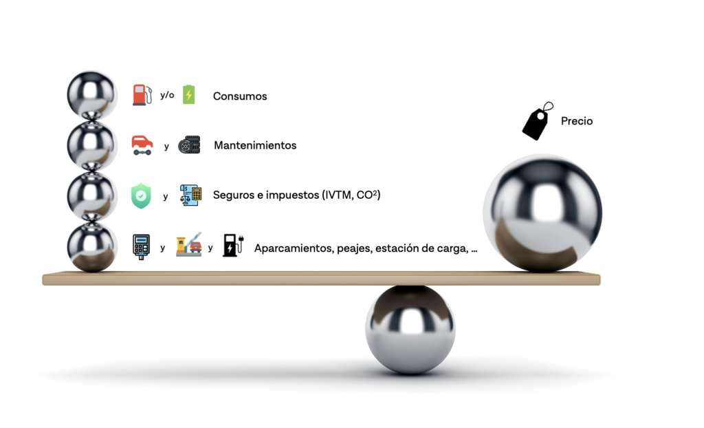 Depende de cuántos kilómetros realicemos con el vehículo, de dónde lo carguemos y a qué coste, depende de cuánto aparquemos en una zona de estacionamiento regulado, de los ahorros que tendremos en costes de mantenimiento, de cuánto valoremos poder ir por un carril BUS/VAO o poder acceder a una Zona de Bajas Emisiones, …