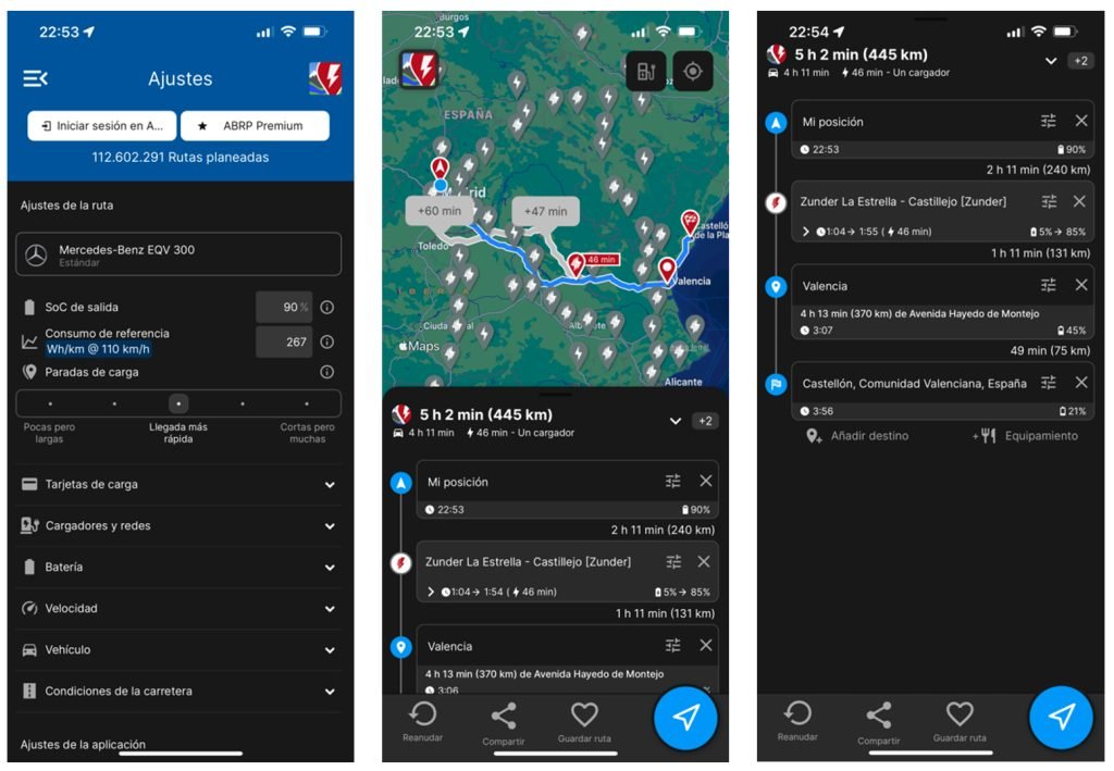 A Better Route Planer ABRP, recientemente adquirida por Rivian, es bastante completa, para la planificación, Chargemap es otra opción también interesante y con funcionalidades similares: