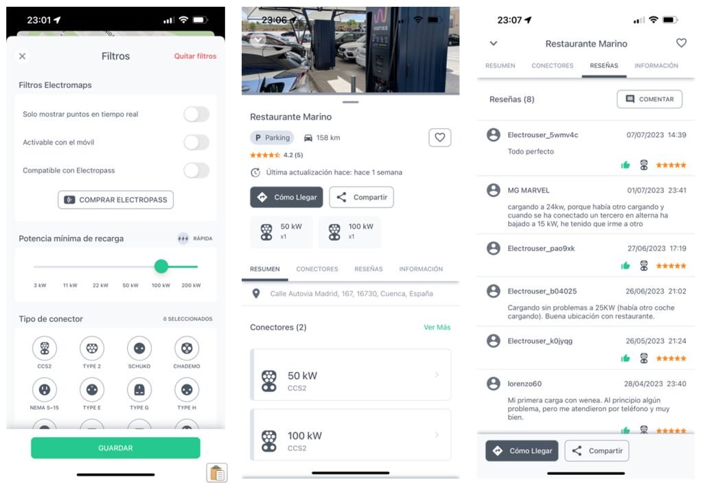 Aunque los proveedores de carga indicados en el listado anterior son por lo general muy fiables, no está de más verificar que están en perfecto funcionamiento. Para confirmar que no tendremos problemas nos puede resultar de ayuda Electromaps, donde además de localizar los puntos de carga de cualquier operador, podremos consultar su estado a través de las reseñas de usuarios: